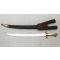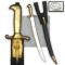 Rare et magnifique sabre/glaive de sous-officier italien, modèle 1843. La poignée et les ganritures du fourreau sont en bronze doré. La lame est assez propres, quelques traces dûes au temps, notamment vers la fin, sans gravité. Elle comporte un marquage du fabricant difficlement lisible : ''...F. BIANCHI AR... LL P ...MEZZANI...'' et '' MA '' sur la chape du fourreau et la poignée. Le sabre comporte son baudrier et son porte épée en cuir (très rare). Une magnifique pièce, rare, originale et complète, à saisir absolument !