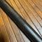 Fourreau en bois recouvert de cuir , bouterole , passant de ceinturon et chape en acier .