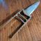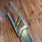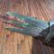 lame à ressort bifide en acier niellée à l'argent de volutes de feuillage. Deux protections de bras symétriques complètent la monture en acier, double poignée en pilastre à quatre pans renflée au centre. Une des branches, quand on la presse fermement coulisse et ainsi commande l'ouverture du couvre lame en contribuant à faire éclater les rivetages de la cotte de maille adverse et ouvrir ainsi un passage à la lame. (Mécanisme à revoir).