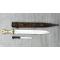 Ce magnifique poignard est composé d'un manche en corne blanche et noir avec des boutons de type argent. La lame en bon état avec des traces dûes au temps, à nettoyer, très solide, elle comporte deux gouttières centrales. Elle comporte également des marquages : '' Deux Lunes '', typique des pièces caucasiennes de l'époque avec son fourreau d'origine, cuir, bois et métal et son '' TRES RARE '' couteau (habituellement perdu ou manquant). Pièce vendue telle que sur les photos et dans la description. Je m'en sépare par manque de place en vitrine. Le kindjal date probablement des guerres du Caucase vers le milieu du XIX. Vous trouverez plus d'informations sur le sujet dans les livres de A.N. Kulinski ou dans la gazette des armes n°184, de décembre 1988.
