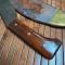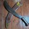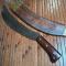 Belle et puissante machette US ,en service dans l' US Army de 1890 à 1920 .Poignée en bois exotique très bon état , lourde lame à forte courbure ,fourreau en cuir gauffré de voluptes et deux garnitures en laiton .