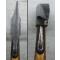 Rare hache de sapeurs pompiers moitié XX ou fin XX , avec cuir très souple, sorti de grenier, dans son jus. Avec des traces dûes au temps, hache marquée '' GPP + COURRONNE '', reste de marquages sur l'étiquette collée sur le bois. Cuir brun d'origine légèrement coupé, mais non déchiré. Pièce pur jus RARE ! ! ! Très rare et 100% originale !