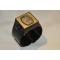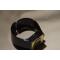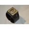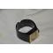 En deux parties montre carrée (32 x 34 mm) encastrée dans un bracelet rigide en plastique noir.