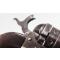 Rare revolver Colt modèle 1860 Army Conversion Richards en calibre 44 percussion centrale de 1873 à 1878, environ 9000 exemplaires, numéroté 195208 produit en 1871. Finition d'origine dans une belle patine homogène, toutes les pièces d'origine au même numéro, marquages réglementaires bien visibles. Mécanisme sans jeu, bonne indexation et entrefer. Canon de 8 pouces à belles rayures encore bien nets, tachées par une légère croute d'oxydation qui devrait s'atténué après tir de quelques plombs.