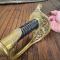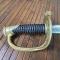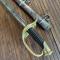 Fusée en corne noire sans accident avec son filigrane torsadé cuivre . Monture ciselée en laiton doré. Garde à une branche évidée munie d'un oeillet de dragonne, calotte à courte queue, plateau débordant et coquille, quillon en un décor floral ajouré.