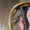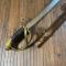 Monture bronze, garde à trois branches à deux matricules, calotte à courte queue poinçonnée B , poignée en bois recouvert de basane veau manque au filigrane.