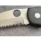 La lame serrated de type dop point est en ATS 55. Elle mesure 93 mm et porte la signature de Waynes Goddard.