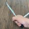 STYLET DE LUXE DAGUE DE VERTU / PIQUE COUILLES AVEC MANCHE EN BOIS D,ÉBÈNE MASSIF SCULPTÉ DE FEUILLAGE, BLASON ET , MITRE ARGENT. XlX éme INTÉRESSANTE LAME ACIER À DENTS AVEC GORGE CENTRALE POINTE CRUCIFORME DE 14 cm .Longueur totale 26 cm. AVEC SON FOURREAU EN ARGENT MASSIF ENTIÈREMENT GRAVÉ DE RINCEAUX TERMINÉ PAR DEUX TÊTE DE MORT MEMENTO MORI symbole de la mort.