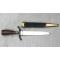 Superbe et rarissime dague de chasse allemande probablement XIX (?). Poignée en bois et en laiton ou bronze, Lame dans son jus avec une gouttière centrale. Fourreau en cuir et en bronze ou laiton. Une magnifique et très rare pièce à saisir de toute urgence ! Très agréable à tenir en mains et encore plus à admirer en vitrine !