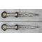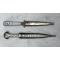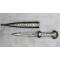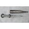 Très beau et rare petit '' Kandjar ''. La poignée et le fourreau sont richement décorés avec de l'argenture. Lame très propre à deux gouttières centrales. Sabre court / poignard très beau et très solide, rare dans cet état de conservation. Pratiquement introuvable sur les sites de vente classique. Une très belle et somptueuse pièce qui commence à se faire rare ! Très agréable à tenir en mains et encore plus à observer en vitrine ! 100% original ! ! ! Un vrai travail d'orfévre qui pourra à merveille décorer votre collection de dagues ancienens et de couteaux.