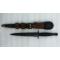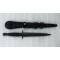Joli poignard probablement dague parachutiste militaire anglaise. La poignée est en métal récouverte de cuir noir. La lame possède une seule et grande gouttière, de type triangulaire, en superbe état, marquage à la main sur le cuir avec le nom du propriétaire. Bouton de fermeture marqué : '' BRSGOS ''. Fourreau en cuir ancien avec élastique ! Bonzage d'origine. Une superbe pièce dans son jus de découverte, à saisir absolument pour tout passionné de paramilitaire ! Très agréable à tenir en mains et encore plus à observer dans sa collection en vitrine !