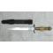 Superbe et rarissime couteau. Poignée en bakélite décoré et incrusté. Lame gravée avec des décors floraux. Gravures à l'eau forte sur la lame '' HIGH LIFE '' + décors floraux. Fourreau en cuir en bel état. Très jolie pièce en bel état de conservation et très peu courante. Très belle et robuste pièce, très agréable à tenir en mains et encore plus à observer en vitrine !