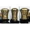 Je vous présente une magnifique et très rare épée de général belge M1845. Monture en bronze doré chromé. Garde à une branche décorée de feuilles de chêne et palmettes. Poignée filigranée. Clavier pliable, fonctionnel à l'avant décoré en relief du lion de Belgique sur fond de branches de chêne et de laurier avec le monogramme de Leopold II, (très rare). Fourreau en cuir avec granitures en bronze dorés etr gravée avec des traces dûes au temps. Dragonne d'officier à cordon en passementerie d'or. Bon état, monture et poignée en très bel état. Restes de gravures sur la lame. Une pièce très rare, pratiquement introuvable ! Pièce provenant de ma propre collection ! Très agréable à tenir en main et à admirer en vitrine ! Superbe et rare pièce, totalement originale ! '' Introuvable '' dans n'importe quel état de nos jours !