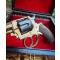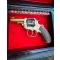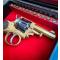 — Poinçons épreuves anglais visibles + superbe présentation en coffret cuir crocodile laqué, intérieur rouge, superbe contraste avec le laiton du revolver.