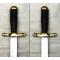 Superbe et grand sabre ou dague de type administration avec lame privée de type Yatagan. La poignée est en bronze doré et en cuir ou bois laqué noir, on y retrouve : '' des reliefs avec un poiçon Ottoman ''. Elle est très solide, sans jeu, dans un état de conservation remarquable. La lame est gravée de '' différents décors floraux et reliefs '' en bon état avec des traces normales dûes au temps. Le fourreau est en acier très propre. L'objet a été très bien entretenu pour arriver à nos jours dans un état plus qu'exceptionnel. L'objet est totalement original et très, très rare, quasi introuvable sur le marché, surtout dans cet état de conservation, '' de musée " ! ! !