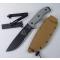 Lame en acier carbone 1095 - Longueur totale : 29.84 cm - Longueur de lame : 14.60 cm - Plaquettes du manche en micarta - Lame serrated - Construit d'une seule pièce - Etui coyote brown molded