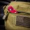 Dans son boitier en aluminium, sur une lame en acier inoxidable, elle s'ouvre tel un couteau avec un verrouilage possible a 90° ou 180° et possède à l'extrémité un tournevis plat pour le réglage des tourrelles de vos optiques. Vous pourrez également la fixer simplement a vos affaires avec son anneau porte clef.