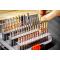 Composé de 37 pièces et d'une pince d'alignement, chaque embouts est soigneusement rangé dans un un étui, avec sa dimension gravé sur le corps et 2 joints pour une meilleure prise en main et éviter de déraper. Il contient plusieurs chasse-goupilles :