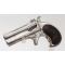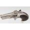 Pistolet Remington Deringer 41 RF percussion annulaire, nickelage en grande partie manquant sans oxydation, marquage de Elliot's Patent 1865 et du fabricant E.Remington & Sons sur deux ligne du modèle 2 à extracteurs bien lisible, fonctionnement mécanique fonctionnelle. Canon à rayures usagées et tachées. Plaquettes de crosse en gutta percha