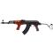 Modèle corps métal de la célèbre AK74 AIM en version longue dite "Roumaine", avec sa crosse en acier repliable et son garde-main en vrai bois caractéristique de cette série (avec une poignée grip avant intégrée dans la partie inférieure du garde-main). Equipée d'origine d'un rail latéral pour le montage d'optique pour AK.