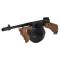 Réplique de la mythique Thompson M1928 en métal avec crosse et garnitures en plastique imitation bois.