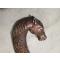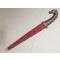 Montage récent. Jolie poignée en métal, patine de style vieux bronze avec incrustations colorées, imitant un modèle moghol du XVIIIe ou XIXe siècle. La lame est très... primitive, mais c'est de l'acier et elle coupe. Le fourreau, lui, est revêtu de vrai tissu de cachemire indien encien, en bon état. L'ensemble est parfait pour la reconstitution.