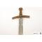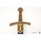 Cette épée comporte une inscription en latin qui signifie: "gardée par un dragon qui ne dort pas, au nom de la vérité".