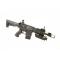L'originalité n'est pas en reste sur cette réplique, frein de bouche démesurée, chargeur court style M16, crosse modernisée, boitier AnpeQ full métal et organes de visée rabattable.