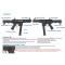 Corp : Polymère Garde-main : Métal ETU : Oui Longueur: 497 mm Poids: 2000g Gearbox: Ver 2 Full Metal Modes de tirs: Semi/Rafales, Sûreté Batterie: 7.4V type mini Hopup: Oui, ajustable