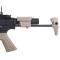 La B4 PDW CQB utilise un corps M4 full métal, avec un pontet élargi pour ne pas gêner si l'on porte des gants, une crosse telescopique type PDW, un garde main M-Lok court avec un stopper intégré, et un silencieux long intégré. On note aussi la présence d'un chargeur polymère d'origine et des organes de visées rabatables travaillées .