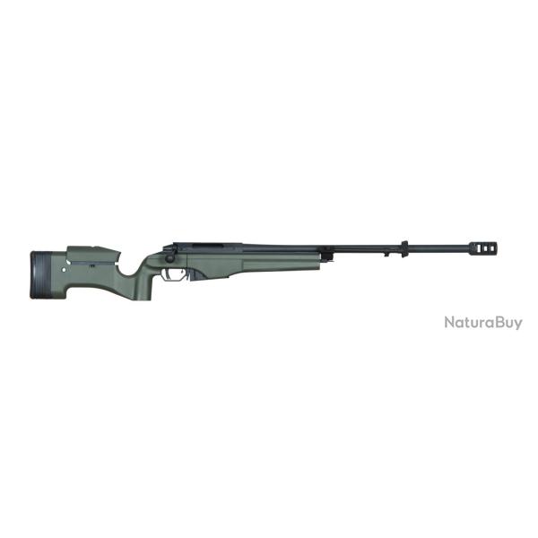 On y retrouve une crosse tactique trés ergonomique avec un appuie joue et un talon de crosse réglable, un bipied intégré, ainsi qu'un canon externe imposant en Aluminium CNC. On y retrouve une crosse tactique trés ergonomique avec un appuie joue et un talon de crosse réglable, un bipied intégré, ainsi qu'un canon externe imposant en Aluminium CNC. Les anneaux de montage y sont déjà fixé il ne reste plus qu'a y ajouter une lunette .