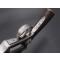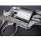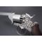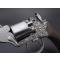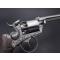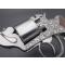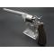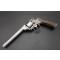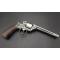 Revolver à système breveté par Fagard à Liège, 6 coups à percussion calibre 38 simple action. Finition poli blanc, carcasse ciselées en creux de feuilles de vignes, mécanisme complet et fonctionnel sans jeu entièrement d'origine et au même numéro 1767, chien latéral avec sureté manuelle, levier bourre balle côté droit, canon octogonal équipé d'une hausse et guidon dérivables, frappe du fabricant au tonnerre, rayures légèrement usagées et tachées, cheminées dévissables, crosse monobloc en noyer quadrillé, calotte gravée en suite, oxydation sur les renfort de poignée, trace de brasure à l'avant du pontet, poinçon ELG non couronné, longueur totale 33.5cm