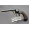 Revolver à système Mariette breveté en calibre 9mm à percussion annulaire, habituellement rencontré en percussion à broche. finition bronzée sur gravures d'époque, mécanisme fonctionnel au numéro 1898, frein de barillet sur canon dévissable, plaquettes noyers quadrillées (fêle), canon lisse de 9cm marqué du brevet. Lg totale 23cm