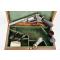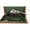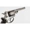 Revolver Beaumont-Adams modèle 1856 avec levier de chargement Kerr présenté dans son coffret d'origine en bois avec accessoires et outils de chargement. Finition patiné gris avec fines taches, marquages bien lisibles, mécanisme complet et fonctionnel en simple et double action, rayures usagées et tachées. Crosse noyer quadrillée. Longueur totale 32cm.