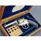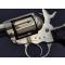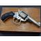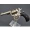 Revolver Colt Lightning modèle 1877 premier essai de double action N°15087 produit en 1879, version particulière livrée au Royaume Uni dans son coffret à étiquette de la Maison Colt, modèle Shériff canon court 9cm marqué du fabricant Colt Hartford USA et Depot 14 Pall Mall London, capacité de 6 coups simple et double action en calibre 38LC. Arme entièrement nickelée d'origine y compris chien et détente, éclats sur le barillet et le canon virant couleur grise sans oxydation. Marquages de calibre dur le pontet et sur le canon gravé à l'acide dit "etched panel", de fabriquant sur le canon et la patent sur le côté gauche de la carcasse sans aucune atténuation. Mécanisme complet au fonctionnement irréprochable avec toutes pièces d'origine, entre fer quasi nul entre le canon et le barillet, insignifiant jeu au verrouillage, indexation des chambres à l'état miroir parfaite. Canon équipé d'un peu commun éjecteur, long de 3 pouces 1/2 rayures d'aspect brillantes miroir sans usure particulière ni aucune tache. Plaquettes de crosse en gutta-percha d'origine sans usure. Coffret boit à feutrine bleu, étiquette du Depot 14 Pall Mall à Londres, munition 380 à blanc des les alvéoles. Rare arme à découvrir en si bel état de conservation, elle mérite de trouver un place dans toutes collections d'armes anciennes.