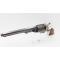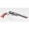 Peu commun revolver Colt 1851 de la seconde génération produit à l'identique aux USA de 1971 à 1978, finition jaspée et bronzée sans usure, pontet et bride de crosse en laiton argenté, plaquette en bois clair, mécanisme sans jeu, rayures miroir canon octogonal de 19cm, marquages bien nets. 6 coups en simple action calibre 36 à percussion.