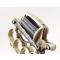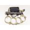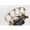 Revolver combiné Dolne ( Apache ) " sortie de bal " breveté en 1870, Carcasse et poing américain en alliage de laiton et d'étain, barillet en fer dans sa finition bleui d'origine, gravures de fleurs décorative, lame dépliable en fer de forme flamboyante de 7.8cm. Belle patine sans usure particulière. Mécanisme bien fonctionnel sans jeu. Marquage du fabricant Dolne-Bar Inventuion Breveté avec le numéro 791 frappés sur le côté droit. Longueur totale fermé 9.5cm, ouvert 20cm. Rare à rencontré en petit calibre 5mm.