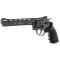 Revolver à chargeur barillet 6 douilles contenant chacune une bille. Visée arrière (Hausse) ajustable en dérive et en élévation pour obtenir une meilleure précision. Crosse grip qui pivote pour pouvoir insérer la cartouche de Co². Livré avec 6 douilles et son speedloader pour recharger encore plus rapidement. Un rail de 8.7 cm fourni pour pouvoir y ajouter un accessoire, une Red dot par exemple. Possibilité d'augmenter la puissance jusqu'à 1.9 joule grâce aux douilles ( non fournies) spécifiques pour obtenir plus de puissance. Siglé Dan Wesson en blanc sur les deux côtés du canon et une petite pastille avec le logo DW qui se trouve sur chaque côté de la crosse.