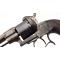 Revolver d'Officier Lefaucheux modèle 1854 fabrication liégeoise, finition luxe gravée de fleurs. Bronzage patiné sans oxydation. Mécanisme complet et fonctionnel sans usure particulière, canon à pans puis rond de 153mm rayures profondes sans usure, quelques taches interne. Plaquettes de crosse en noyer quadrillées et sculpté de palmettes. Marquage Invention Eugène Lefaucheux invention breveté sur le canon, poinçon ELG sur le barillet et JC devant le pontet.