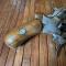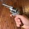 Crosse en bois de noyer à busc sans accident, carcasse poli blanc décoré de gravures au trait, barillet 6 coups bronzé.