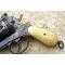 Plaquettes de crosse remplacées en matière synthétique façon ivoire.