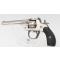 Revolver de poche Iver Johnson patent 1896 calibre 22LR 7 coups simple et doubla action dans sa finition nickelée avec petits manques et fines taches sans corrosion, plaquettes en gutta-percha. Mécanisme complet et fonctionnel sans jeu, indexation parfaite, enterfer visible, rayures brillantes satinées sans usure prononcées, superficielles taches. Longueur totale 23cm. Holster cuir type Western