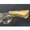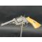 Revolver de fabrication française très soignée, signé H. Fauré Lepage Arquebusier à Paris, Monogramme incrusté Or sous le pontet aux initiales de Emile Colleta, capacité 5 coups à simple et double action en calibre 7mm CF. Arme entièrement gravée en creux, patinée grise avec une malheureuse oxydation sur la pente et talon de crosse, côté droit du barillet, du canon et la portière. Canon de 80mm, rond, avec de très belles rayures peu usagée proche miroir, présence de fines taches d'oxydation. Mécanique complète au fonctionnement irréprochable, toutes pièces d'origine montées avec un ajustage parfait, entre fer non excessif, verrouillage avec insignifiant jeu et une indexation parfaite, système de verrou d axe de barillet atypique. Plaquettes en ivoire non accidentée, la vis de maintien est bloquée. Longueur totale 20.5cm