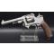 Revolver militaire d'essai St Étienne modèle 1887 N°F16 daté 1888, calibre 8 mm, capacité 6 coups en simple et double action. Finition poli blanc nettoyé de sa patine, fines taches localisées sur le barillet et sous le support de baguette. Inscription du modèle et marquage de la Manufacture d'Armes de Saint-Étienne parfaitement prononcés sans atténuation, poinçons de contrôleur conformes et d'origine. Mécanisme complet et fonctionnel avec toutes pièces d'origine au même numéro de montage A18, coloration jaunies patinées, sans entre fer excessif à la jonction du canon et du barillet, verrouillage sans aucun jeu et une indexation parfaite. Canon avec de belles rayures peu usagées d'aspect brillantes miroir. Plaquettes de crosse en noyer avec leurs poinçons de réception encore visibles, sans usure ni choc. pièces interne encore jaunie.