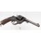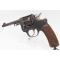 Revolver 1892 civil St Etienne. Bronzage d'origine sans usure prononcée, une fine tâche sur le dessus du cadre. Mécanisme fonctionnel avec toutes pièces d'origine au même numéro, verrouillage sans jeu, entrefer et indexation des chambres parfaite. Percuteur flottant maintenu par une vis apparente. Canon long de 12cm, rayures d'aspect brillantes sans usure particulière, superficielles taches. Chambres du barillet à épaulement, sans oxydation. Plaquettes en noyer quadrillées sans accident. Longueur totale 27cm.