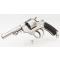Revolver réglementaire troupe d'infanterie ou Gendarmerie modèle 1873 daté 1876, capacité 6 coups en simple et double action calibre 11mm. Finition poli blanc sans oxydation. Inscription du modèle et marquage de la Manufacture d'Armes de Saint-Étienne bien nets, poinçons de contrôleur conformes et d'origine peu atténués. Mécanisme complet et fonctionnel avec toutes pièces d'origine au même numéro, sans entre fer excessif à la jonction du canon et du barillet, verrouillage sans jeu, indexation parfaite, chambres sans tache, les pièces internes et externes dans leurs coloration jaune paille. Canon avec de belles rayures d'aspect brillantes miroir sans usure ni aucune tache. Plaquettes de crosse en noyer peu usagées sans accident.