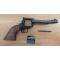 Revolver Schmidt Ostheim Rhoen modèle 21 monocoup calibre 22 LR, canon 15 cm miroir, mécanique bien fonctionnelle, crosse en bois sain, hausse réglable, longueur totale 28 cm, poids 960 gr.