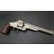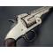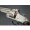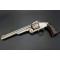 Revolver S&W second modèle American calibre 44 simple action, adresse et brevets sur le canon bien lisibles, mécanisme fonctionnel avec léger jeu latéral et longitudinal, entre-fer non excessif et indexation des chambres parfaite, canon long de 8" 20.5cm rayures usagées et finement tachées sans corrosion, bon cran d'armé et demi armé bien, extraction collective à brisure. Plaquettes de crosse en noyer lisse accidentées au talon. Longueur totale 36cm Arme dans son nickelage patiné et taché.