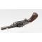 Revolver S&W 32 single action modèle 1 - 1/2 calibre 32 court à percussion centrale. Produit entre 1878 et 1892 à 97574 exemplaires. Marquage de brevet 1877 et adresse Springfield Mass USA sur le canon, gravure sur les côtés du revendeur " Houlier Blanchard à Paris " et poinçons d'épreuve ELG et d'un contrôleur liégeois sur la face arrière du barillet. Plaquette en gutta-percha marbrée sans accident. Mécanisme complet et fonctionnel au même numéro 57547, finition d'origine bronzée avec patine et traces d'oxydation localisée. Belles rayures encore brillantes sans usure particulière avec fines taches interne. Monogramme gravé à l'arrière du chien sur la carcasse.