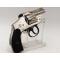 Peu commun revolver Smith et Wesson de poche double action 5 coups calibre 38 dans son nickelage d'origine, mécanisme fonctionnel sans jeu et rayures brillantes sans usure particulière ni tache. Plaquettes gutta-percha sans accident.